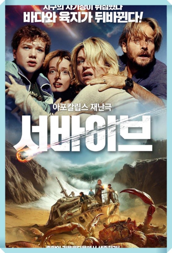 영화 '서바이벌'은 자기장 역전이라는 기발한 설정, 해양 재난 속에서 역설적으로 생존 도구가 되는 문명의 쓰레기들, 그리고 모든 것을 뛰어넘는 모성애를 통해 웰메이드 재난 스릴러의 정수를 보여줍니다. 단순한 탈출극을 넘어 환경과 인류의 미래에 대한 묵직한 경고를 던지는 이 작품은, 극한 상황에서 붕괴하는 질서와 그보다 강인한 인간애를 속도감 있게 담아낸 수작입니다.